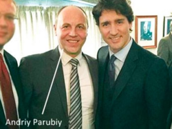 Canadian fascist leader Justin Trudeau posing with Ukrainian neo-Nazi party founder Andriy Parubiy.[6]
